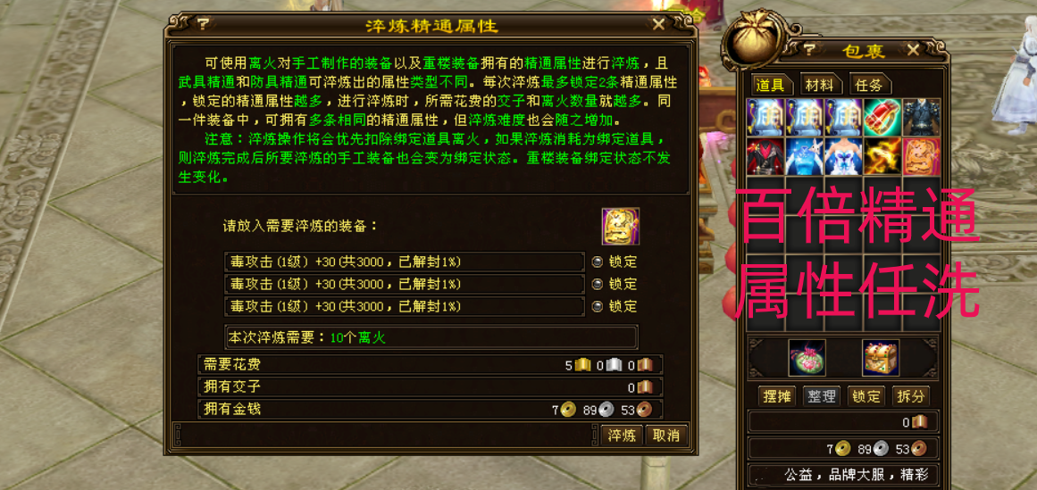 【独家更新】真实装备精通,百倍精通属性伤害,淬炼出3属性100级,你就是王者中的王者,威武霸气,